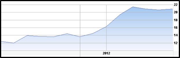 Apple stock from early 2011 to mid-2012